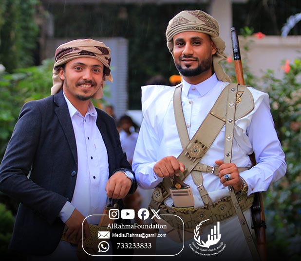 On the eveningĀ Al-Rahma Foundation for Humanitarian Development held a wedding ceremony for young Ayman Rasam in an atmosphere filled with joy and happiness, attended by a number of social figures, relatives of the groom, and representatives of the foundation.
